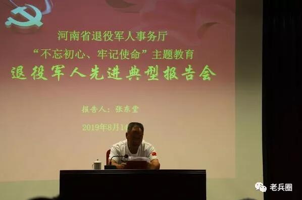 8月14日,河南省退役军人事务厅举办“不忘初心、牢记使命”主题教育退役军人先进事迹报告会,邀请2018年全国